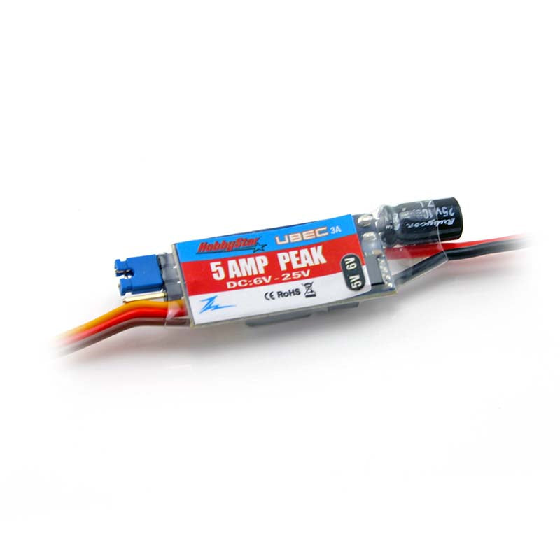 HobbyStar external BECs are specifically designed for demanding applications and therefore have the capability to support the higher momentary peak demand loads to eliminate the possibility of unwanted shutdowns. Simple to install and easily adjustable, HobbyStar BEC's provide peace of mind.