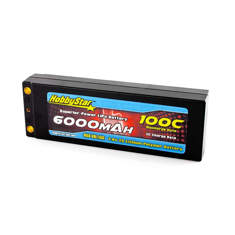 HobbyStar 6000mAh 7.6V, 2S HV 100C Hardcase LiPo Battery - Terminal Style