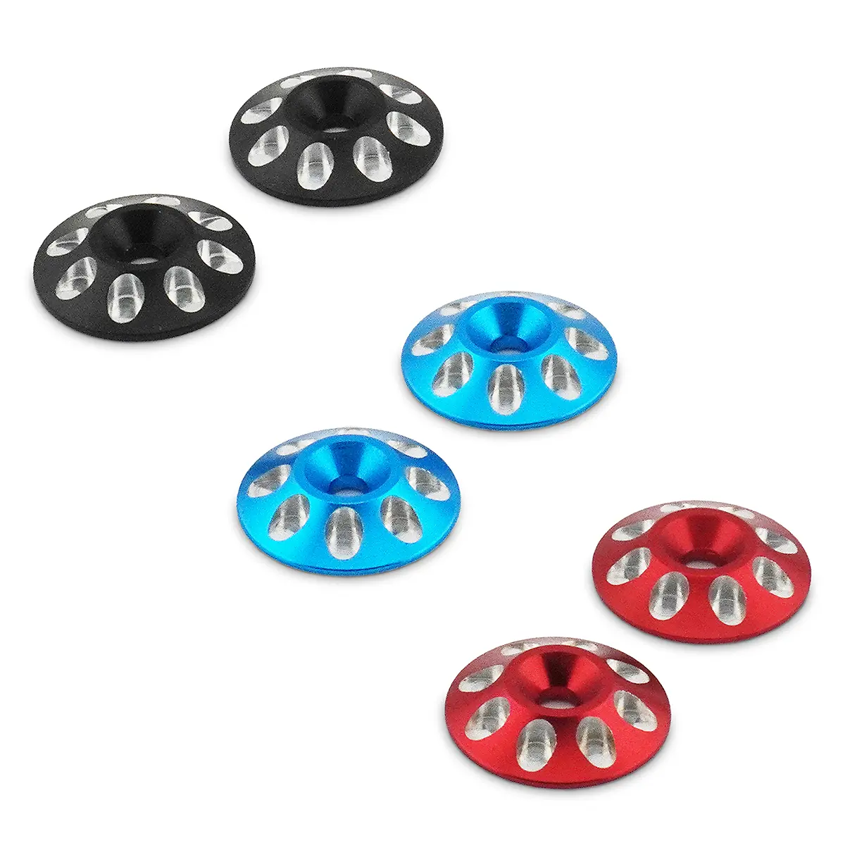 This is a pack of two HobbyStar Aluminum Off-Road Wing Mount Plate Buttons. These aluminum wing buttons are machined to be lightweight yet durable and are designed to be used with M3 flat-head screws.