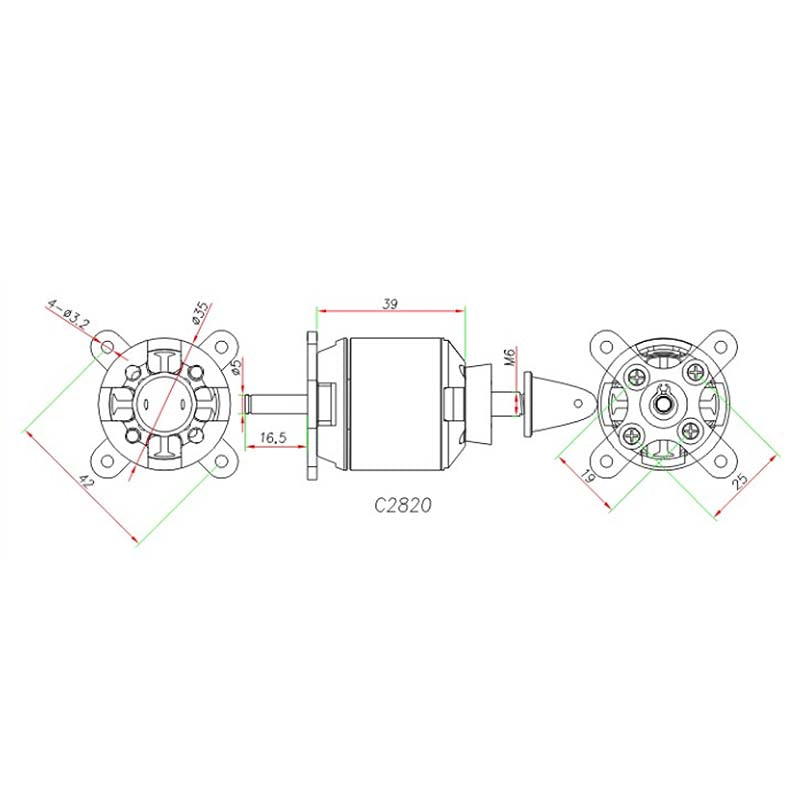 | 1000 | 2820-06 | 750 | 2-4S | 55A | 14 | 2.0A | 0.039 | 35x42mm | 2820 | 132g | 10*6/12*6.5/13*8 | 5mm | 3.5mm |