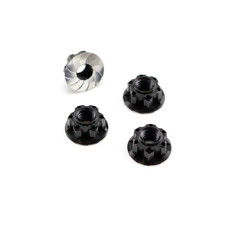 HobbyStar Aluminum Lock Nut, V2 "Gripper" Serrated, Nylon, M4, 4-pack