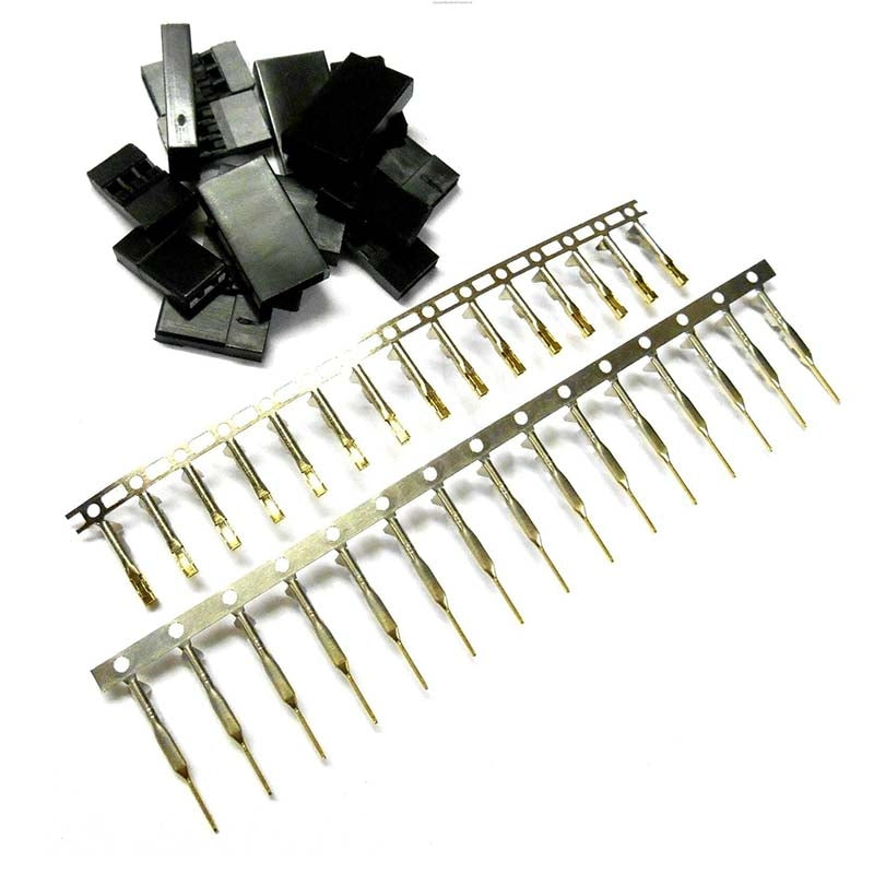 5 sets of JR-style connectors, male and female. Requires crimping pliers to install.