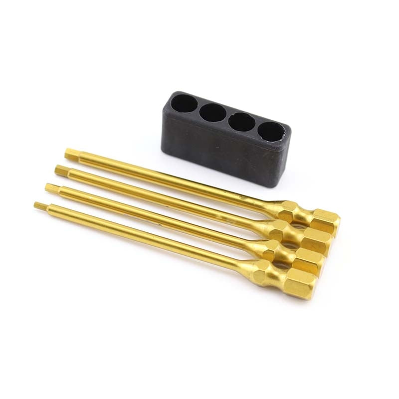 HobbyStar 4pc. Electric Screwdriver Hex Driver Set with standard 1/4" drive end for use in Hobbystar Power Screwdriver and common electric screwdrivers. TiNi coated.